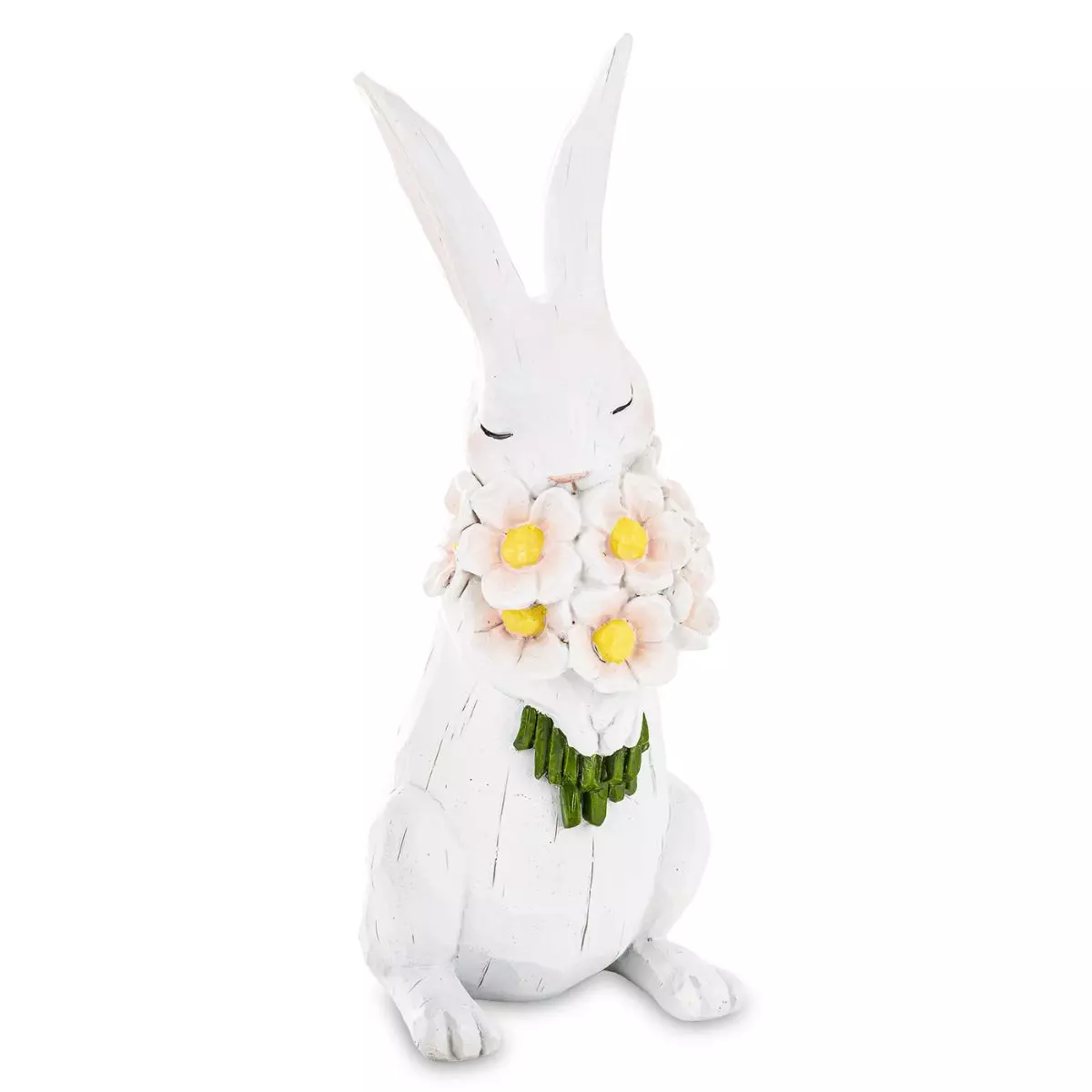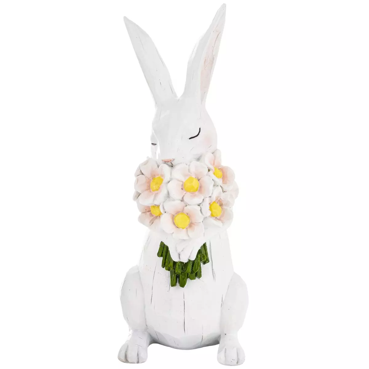 FIGURKA ZAJĄCZEK BIAŁY Z BUKIETEM 29 CM