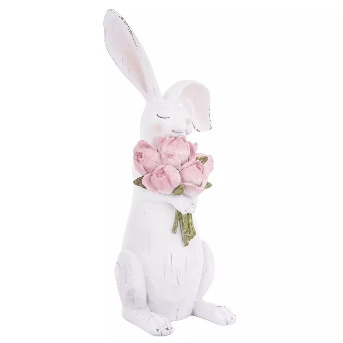 FIGURKA ZAJĄCZEK BIAŁY Z RÓŻOWYM BUKIETEM XL 45 CM