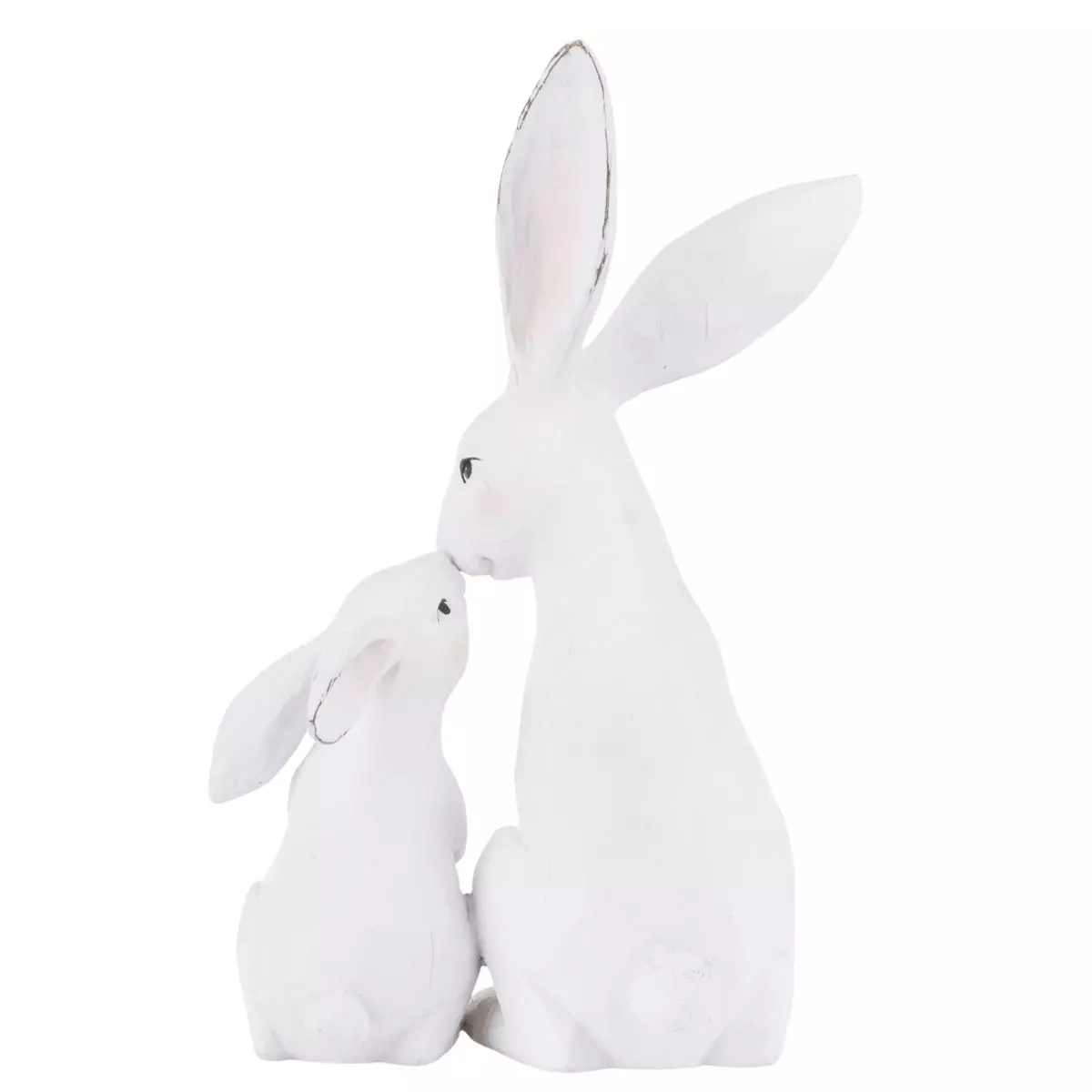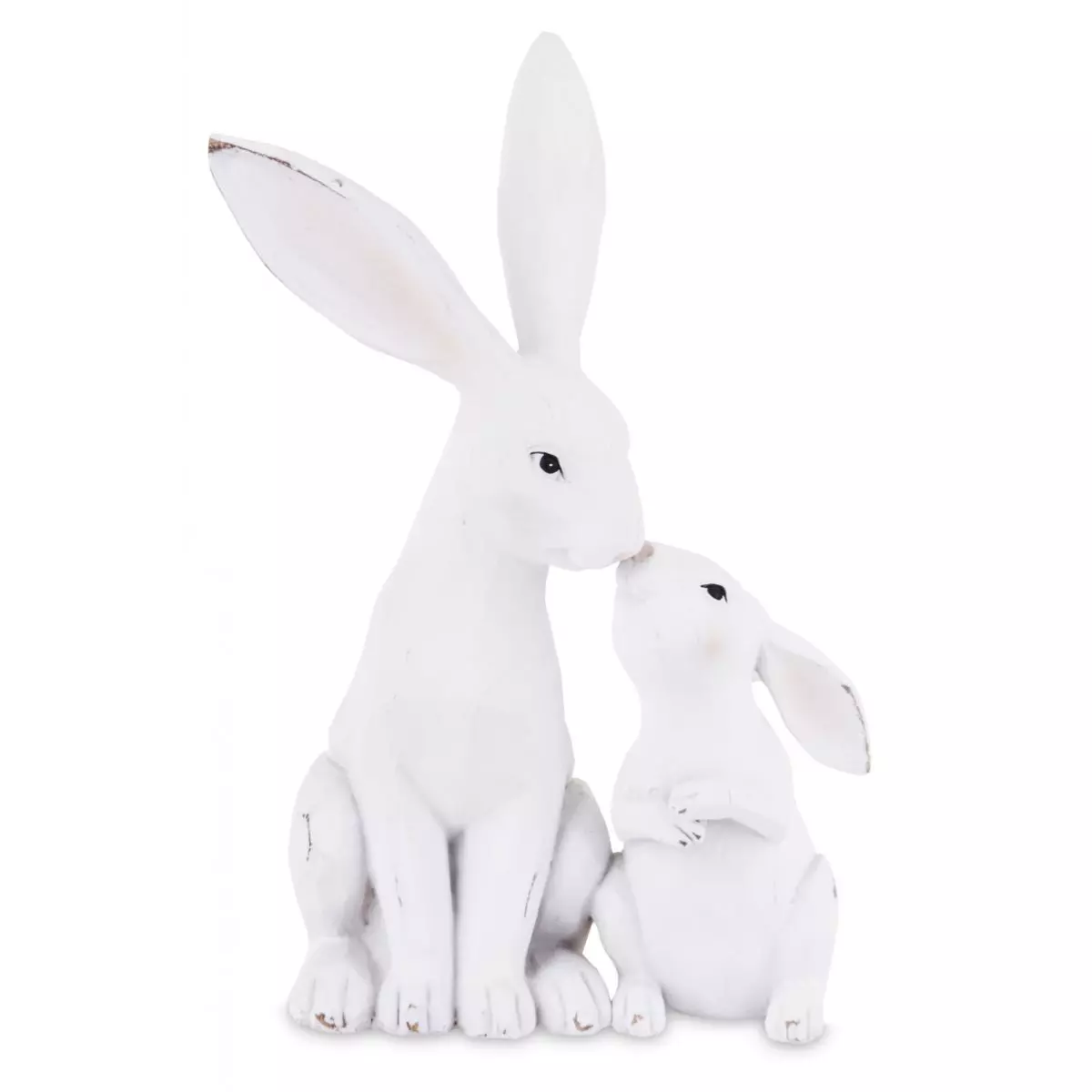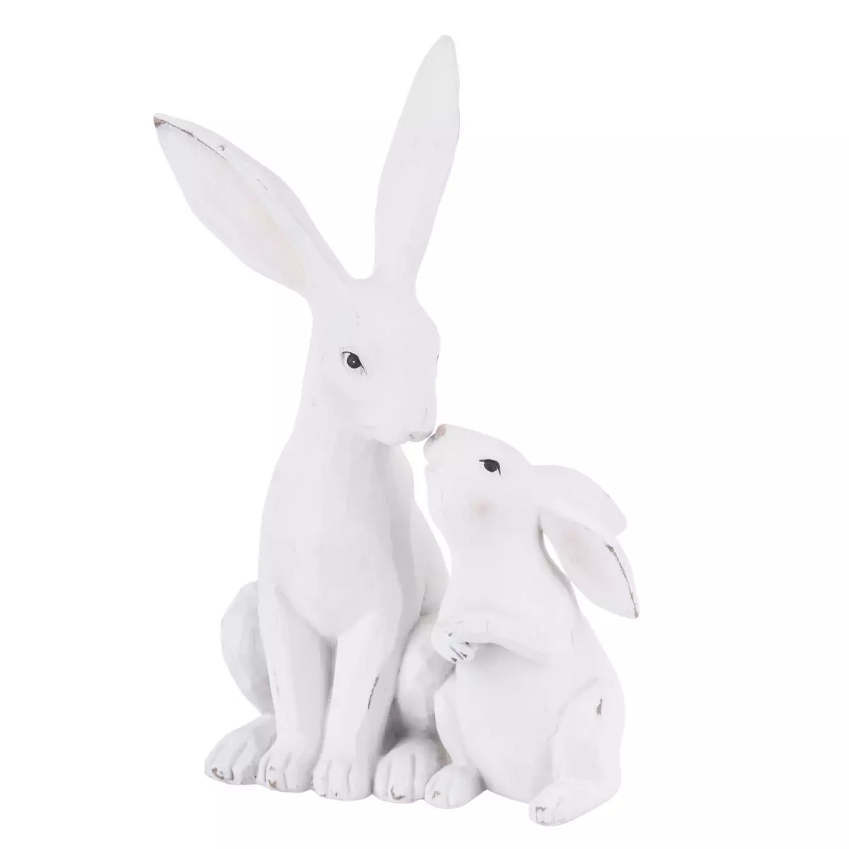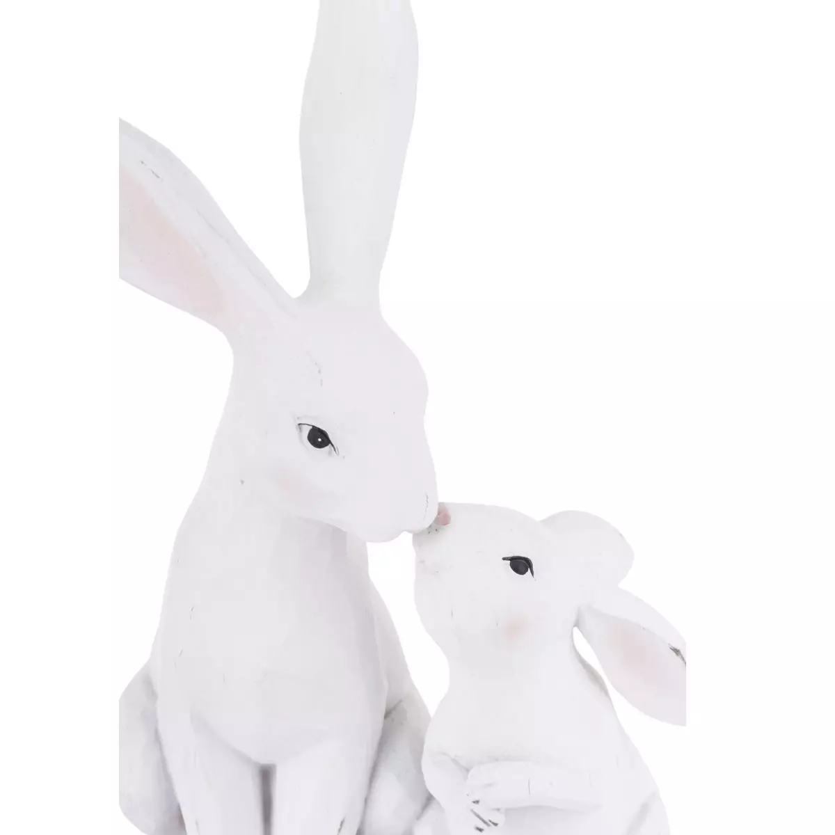 Starannie wykonane detale podkreślają ciepły, rodzinny charakter figurki – czuły gest małego zajączka nadaje jej wyjątkowej lekkości i symboliki, kojarzącej się z odradzającą się naturą i radosną atmosferą wiosny. Matowe wykończenie oraz subtelne przetarcia dodają dekoracji stylowego, lekko rustykalnego uroku.