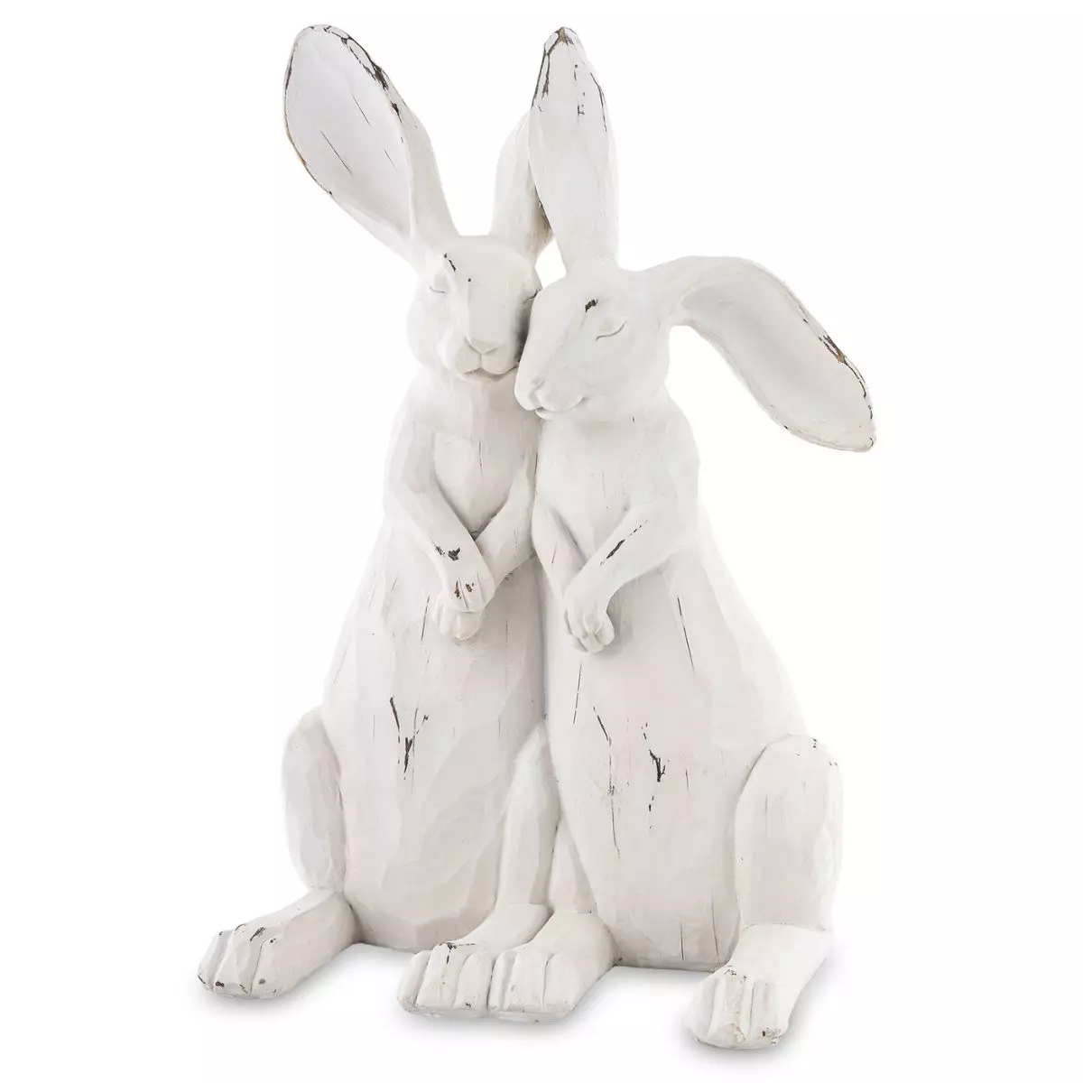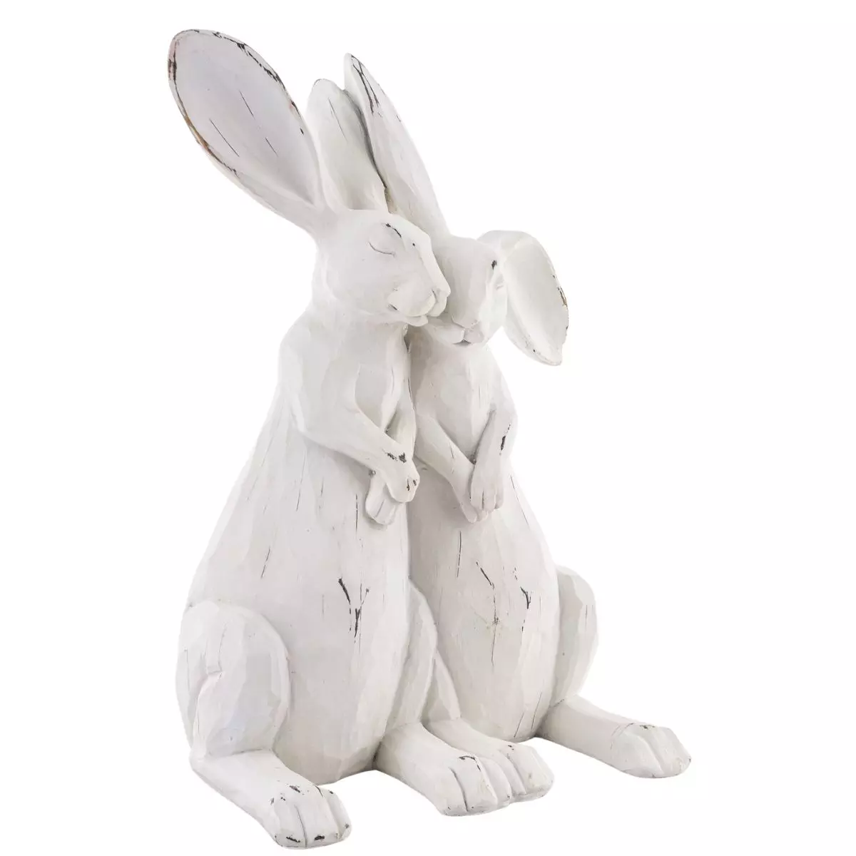 Urocza figurka dekoracyjna zajączków to wyjątkowy element aranżacyjny, który wprowadzi do wnętrza świeży, wiosenny klimat i subtelną wielkanocną atmosferę. Dwa przytulone do siebie zajączki symbolizują ciepło, bliskość i radość nadchodzącej wiosny, dzięki czemu dekoracja doskonale sprawdzi się zarówno jako ozdoba świąteczna, jak i całoroczny akcent w stylu rustykalnym lub skandynawskim.
